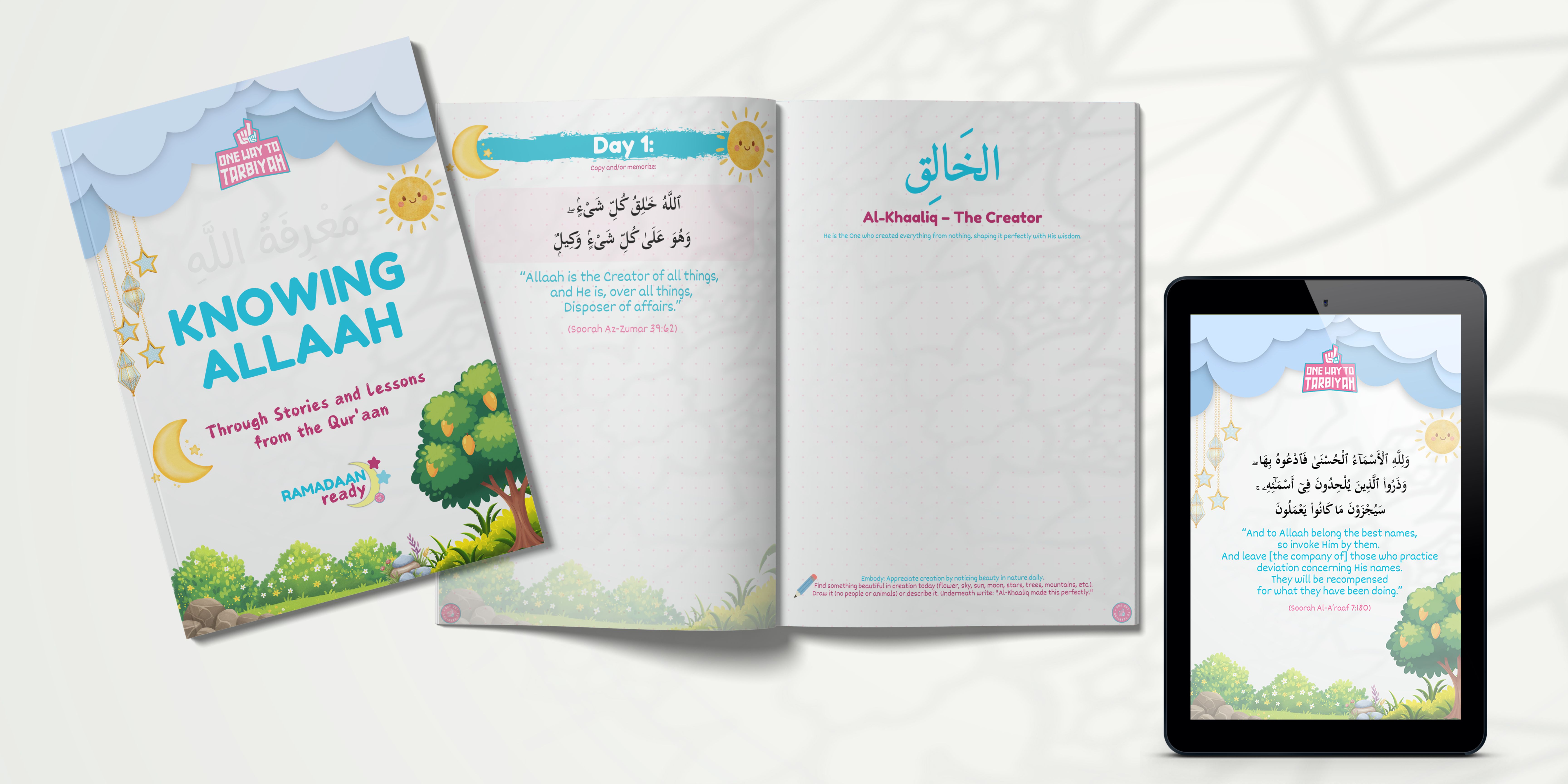 anchors true Tawḥeed by helping children recognise Allaah’s Names and Attributes in their daily life through authentic Qur’aanic stories, reflection, and daily guidance — so belief moves from the tongue to the heart.